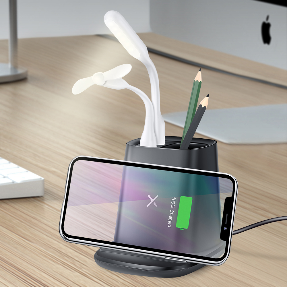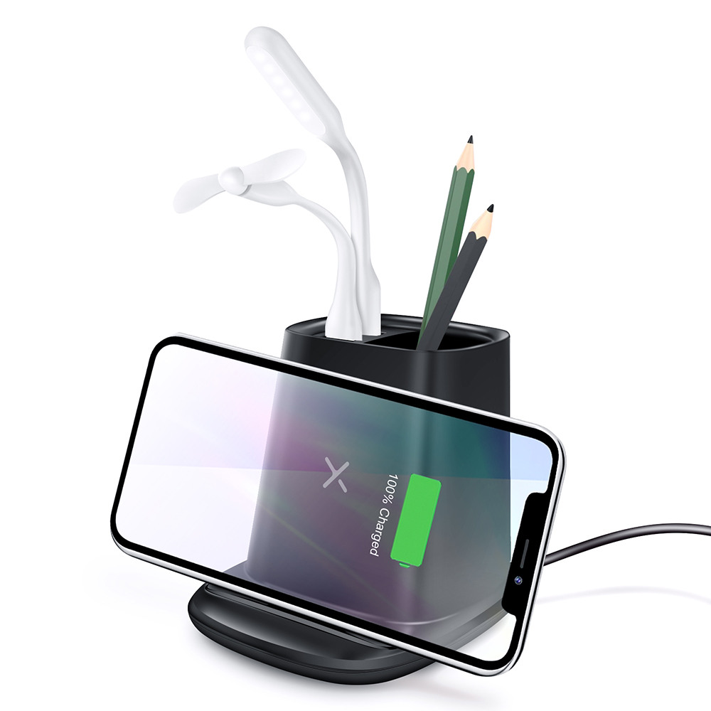 - يأتي بشاحن لاسلكي للهواتف التي تدعم الشحن اللاسلكي.