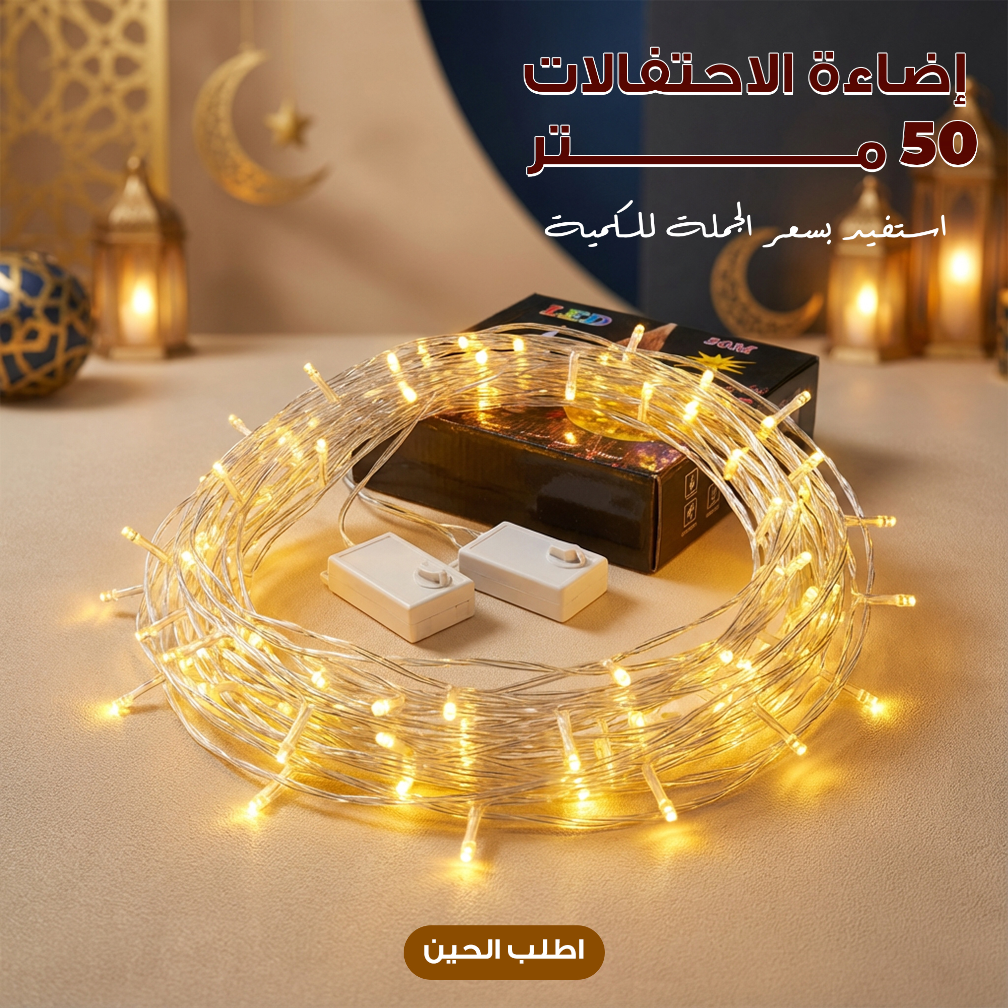 طول السلسلة 100 متر، والمسافة بين المصابيح 20 سم