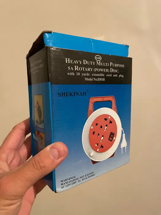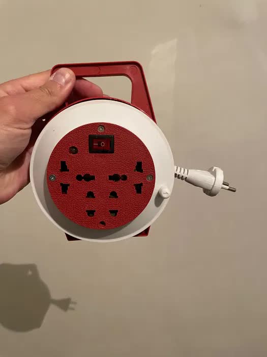 له قواعد تثبّته، ومعه زر تشغيل وإغلاق.