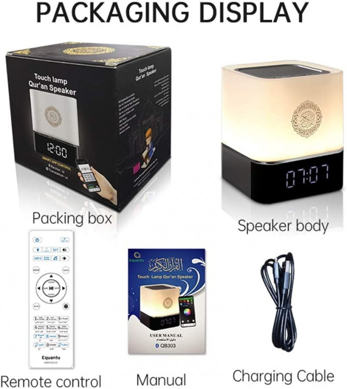 مزوّدة بذاكرة داخلية مدمجة مخزن فيها القرآن والأدعية والأحاديث وغيرها.